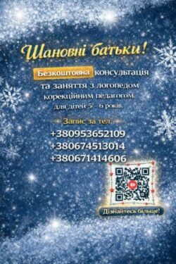 Безкоштовна консультація та заняття з логопедом та корекційним педагогом