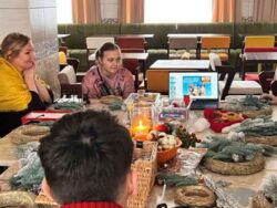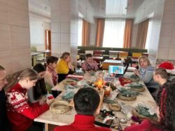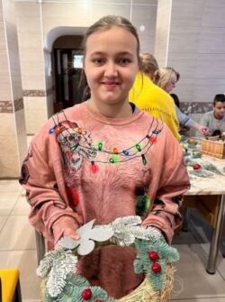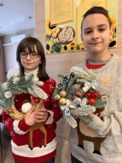 Тому в час підготовки до святкувань відбувся майстер – клас з виготовлення різдвяних віночків. Створені дитячими добротою та теплом прикраси уособлювали в собі радість, отримання цікавих практичних вмінь, а також новорічний та різдвяний настрій. Різдвяний вінок втілює ідею вічного життя, оскільки зелений колір – колір життя, а свічечка – це світло, що осяює наш світ на Різдво. Чарівна творча атмосфера та незабутні емоції під час майстеркласу якнайкраще сприяли створенню чудових прикрас.